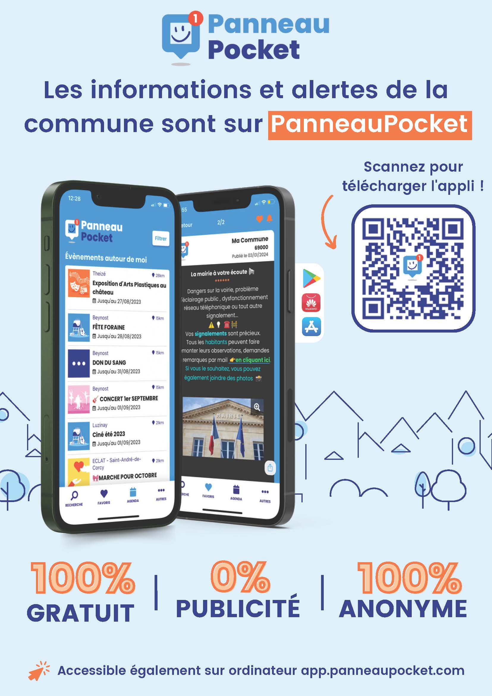 Vous trouverez sur PanneauPocket des alertes et arrêtés de la préfecture, alertes météo, coupures réseau, travaux à venir, comptes-rendus de conseils municipaux, évènements de la vie quotidienne et manifestations...